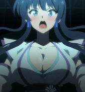 Daughter of the Kirasagi Conglomerate president, Astaroth founded the Evil Organization Kisaragi alongside Belial the Great Flame and Lilith the Dark, to conquer the world as retribution for Lilith losing her parents in a civil war. After her loyal subordinate Six was wounded in a Hero attack, she subject herself to the surgeries that gave her cryokinesis in order to avenge him.[1] Astaroth also was ruthless at first, planning to hang all the corrupt rulers and wealthy people, even though Astaroth became nicer after spending time with her subordinates.[2]
